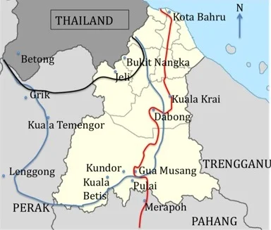 Kelanatan and the 'Kuomintang state' showing the possible extent of the 'state' after MPAJA incursions
